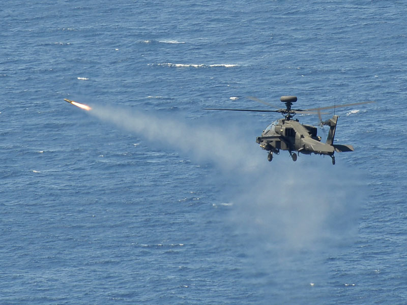 There are three British Army WAH-64D Apaches embarked on the assault ship HMS Ocean, with up to three more on the way. The choppers were recently re-certified for shipboard use, as a partial replacement for the Royal Navy’s recently-retired aircraft carrier and Harrier jump jets.